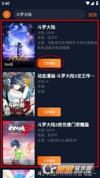 3、一般搜索都会出现多个结果,尤其是系列比较多的,选择要看的动漫,点击“立即播放”;