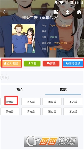 4、等待漫画加载完成后即可开始阅读,你可以选择想要阅读的章节,还可以将其添加到书架中。