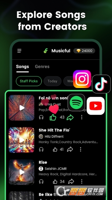 musicful ai写歌软件安卓版是一款强大的ai写歌编曲软件,提供精彩的ai音乐生成器相关功能,打造全新的音乐资源内容,各种精选ai音乐生成都在这里,非常受欢迎,关注更多样化的精彩音乐生成器工具,非常精彩,感兴趣的小伙伴们欢迎来下载试试吧。