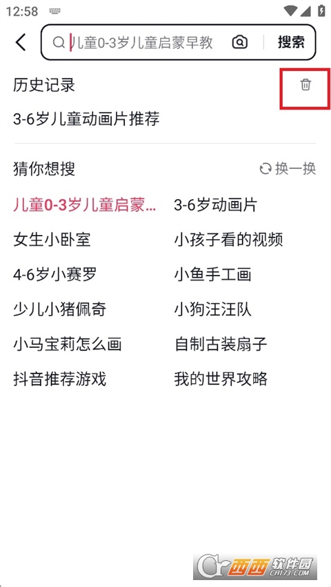 4、在搜索界面可以单击搜索框下面是删除按钮对搜索历史记录进行删除