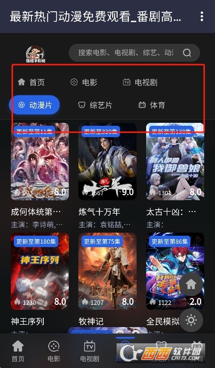 2、通过底部导航栏进入“分类”页面,按类型、地区、年份筛选作品;也可使用搜索功能精准查找。