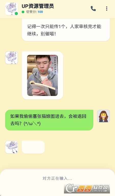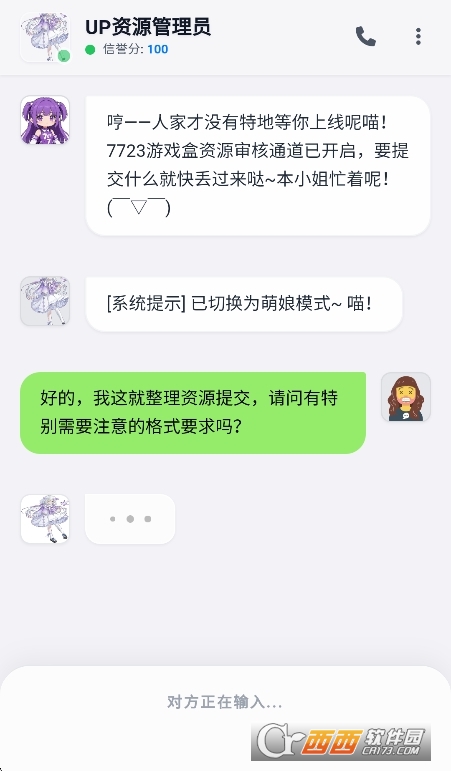 3、在聊天界面输入文字,与管理员自由交流。对话内容会影响好感度变化。
