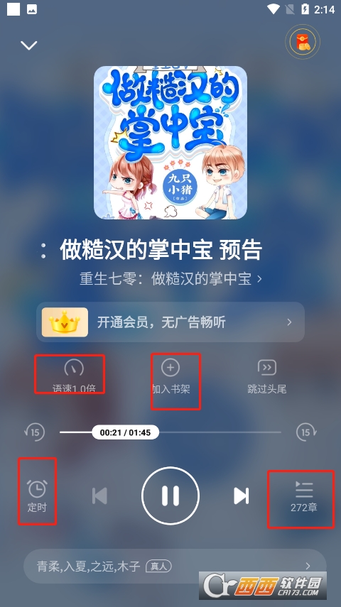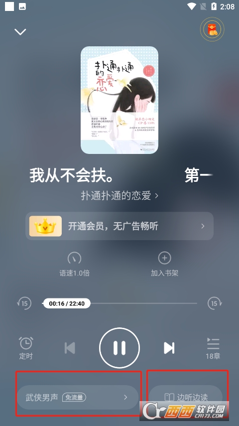 3、接下来你便可以进入听书界面,这里有边听边读的功能,还可以切换阅读声音。