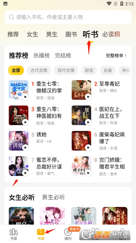 4、除了上面这个听书方法,你还可以在书城直接选择听书选项,在这里点进你想听的小说。