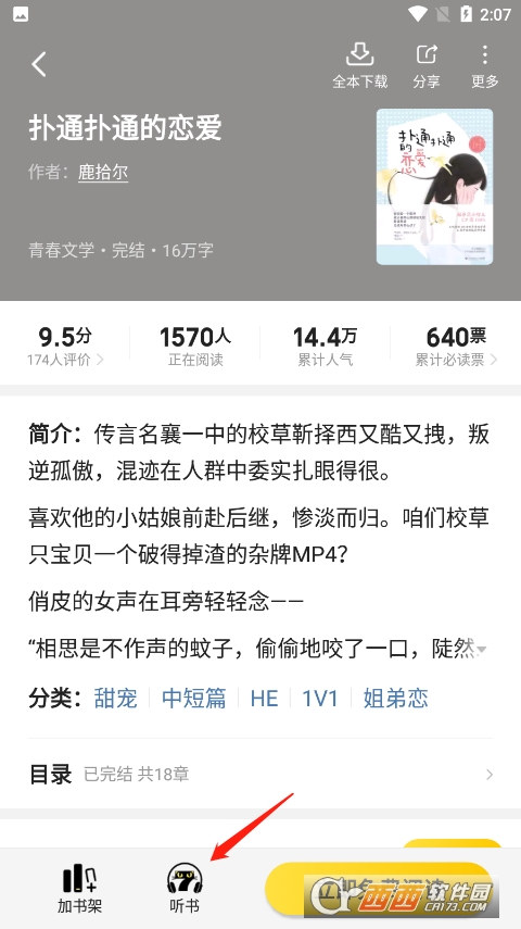 2、随后点击小说简介下方听书。