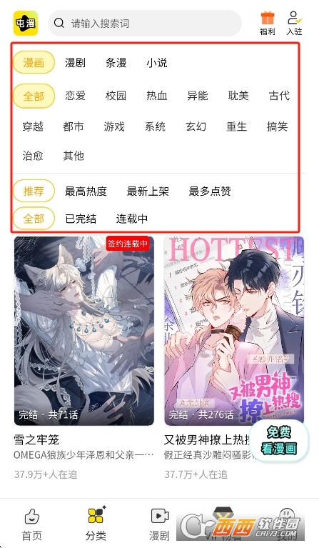 2、海量资源,题材全覆盖:汇聚国内外热门漫画,涵盖热血、恋爱、悬疑、古风、科幻等数十种题材,每日更新。