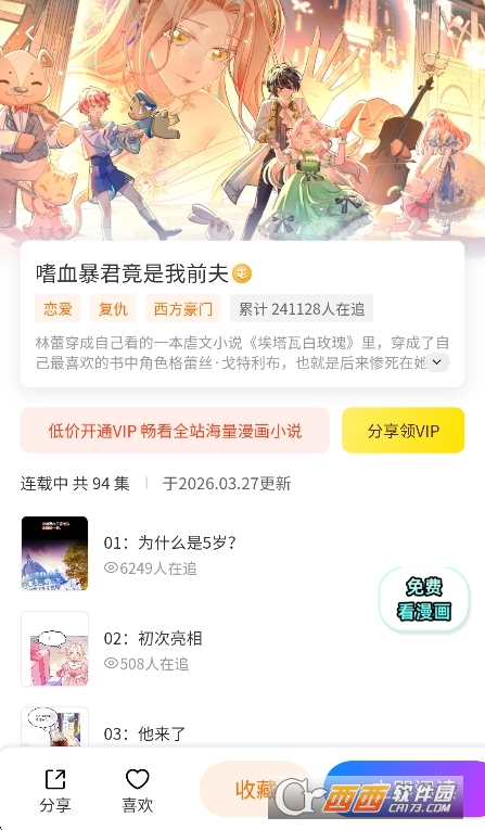 4、点击封面进入详情页,选择漫画、小说或漫剧标签,进入阅读模式。