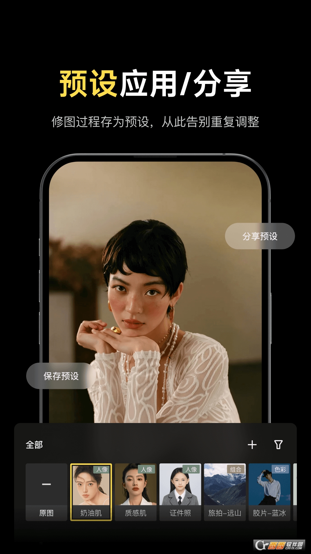 内置婚纱、儿童、证件照、电商等 20 + 专业预设,一键匹配不同主题,新手也能快速出专业片。 支持自定义预设与 AI 追色,精准还原样片色彩,解决客片与样片色差难题。