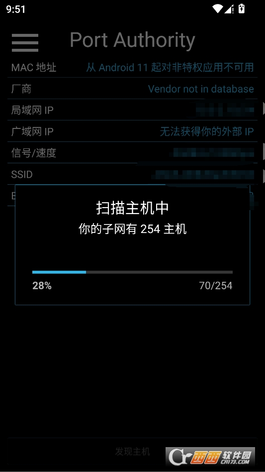 Port Authority是一款开源免费的Android平台网络扫描与安全管理工具,主打轻量、极速、易用,专为需要快速排查局域网设备、监测网络安全的用户设计,无需具备专业的网络知识,即可轻松上手操作。该软件采用优化的多线程扫描算法,大幅提升扫描效率,通常情况下,本地子网内的主机发现可在5秒内完成,全端口扫描速度远超同类移动端网络工具,有效节省用户时间。软件界面设计简洁直观,无任何冗余功能与广告干扰,核心操作集中在主页,用户只需点击“扫描”按钮,即可自动探测当前连接网络的子网信息,快速列出所有在线主机,并详细展示每台主机的IP地址、MAC地址、设备厂商、开放端口等关键详情,让用户一目了然掌握局域网设备连接状态。