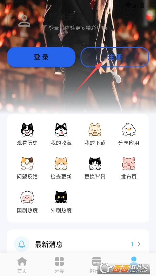 来到个人中心点击注册按钮,随意输入皆可成功注册