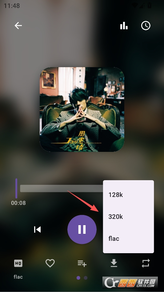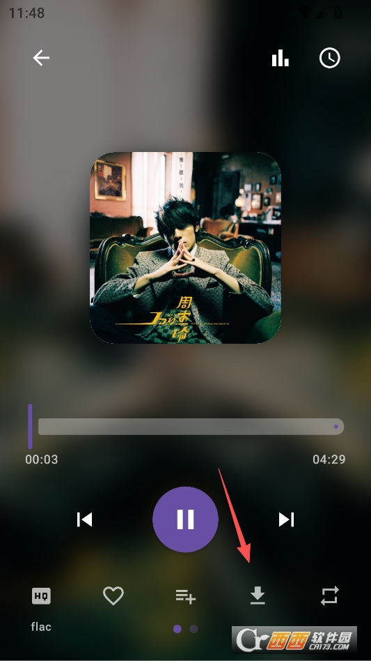 找到你喜欢的歌曲开始播放,在播放界面点击下方下载按钮