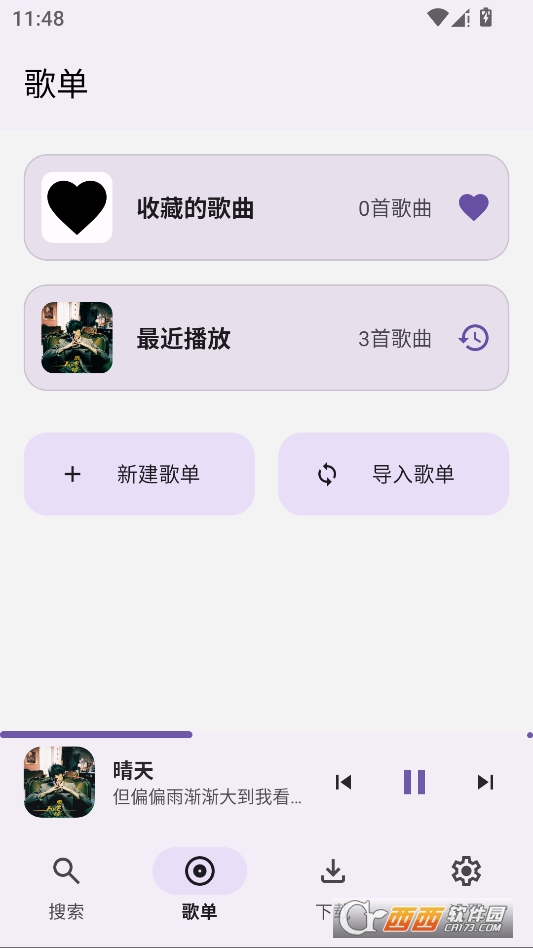 4. 简洁便捷操作:界面设计简洁雅致,布局清晰,分类明确,播放、暂停、切换歌曲、调节音量等操作一键完成;支持歌曲收藏、创建自定义歌单,可按喜好整理专属歌单,同时支持歌单导入,无需手动重新收藏,一键同步喜欢的歌曲。