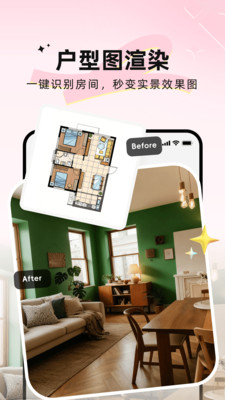 1. 智能精准识别:上传毛坯房或旧屋照片,强大AI能智能识别空间结构,基于需求生成高清逼真装修效果图,让您告别想象,提前预见未来家的模样。