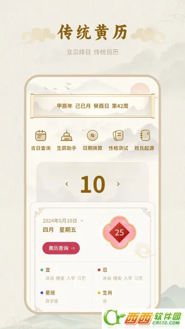 1. 它能准确查询每一天的宜忌事项,无论是搬家、结婚还是动土等,查一下就心中有数,办事不慌。