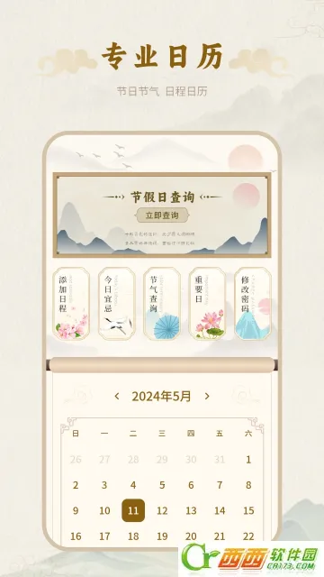 4. 日历查看功能多样,日视图、周视图、月视图,想怎么看就怎么看,不挑方式习惯。它界面简洁不冗余,凸显中国风,优质好用,还完美继承延续了中国传统文化。