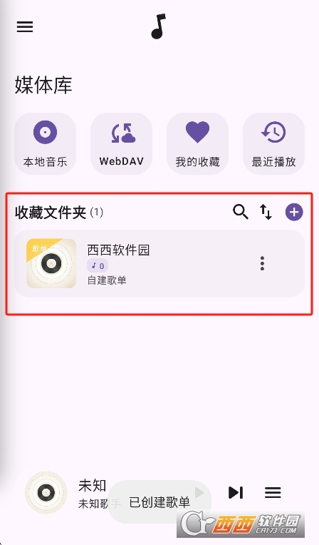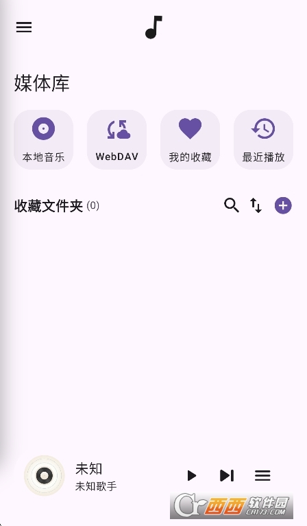 3、浏览音乐:扫描完成后,主界面展示“歌曲”“艺术家”“专辑”“文件夹”“播放列表”五个标签页,按需切换浏览。