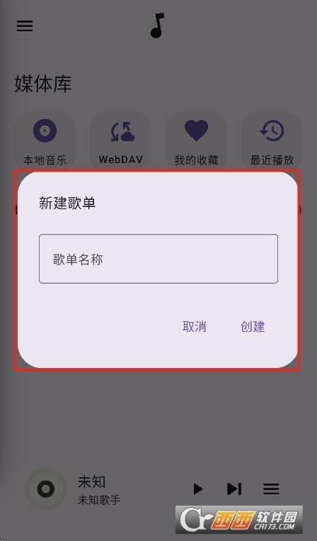 2、创建播放列表:在“播放列表”标签页点击“新建”,输入名称后,长按歌曲选择“添加到播放列表”。