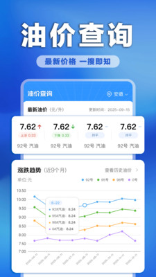 想知道今日油价实时情况?这款工具能帮你轻松搞定!它能让你一搜即知油价价格,92、95、98号汽油实时价格一目了然。还能智能筛选附近油站,一键推送离你位置距离短的加油站,系统自动推荐并导航直达,方便你便捷加油。不仅如此,这里特惠好油多,能让你加油更省钱。实用券卡福利超多,加油券、满减券每日可领,积少成多,越加越省。另外,它还能清晰呈现油价涨跌趋势,让你随时观察调价日期,帮你判断合适的加油时机。有了它,你再也不用为油价信息不及时、加油不划算而烦恼啦,赶紧用起来,轻松掌握油价动态,享受便捷加油生活!
