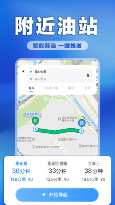 2、附近油站智能筛选,一键推送,离你位置距离短的加油站系统自动推荐,导航直达。