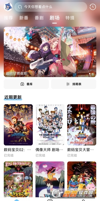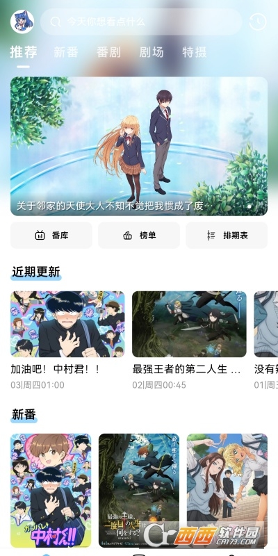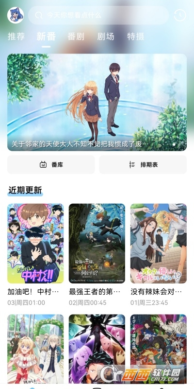 1、首次进入展示热门推荐、新番时间表、分类入口。