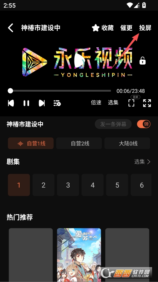 来到动漫播放页,点击右上角的投屏按钮