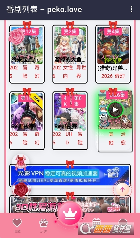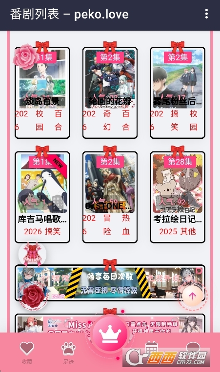 5、界面可爱,操作便捷:粉色系萌系设计,分类清晰,搜索强大,一键追番,自动记录进度。
