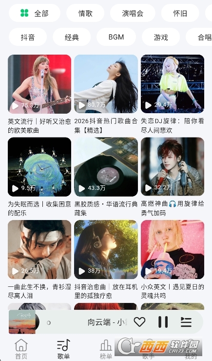 歌单广场:用户自建歌单、官方精选歌单,每日更新。