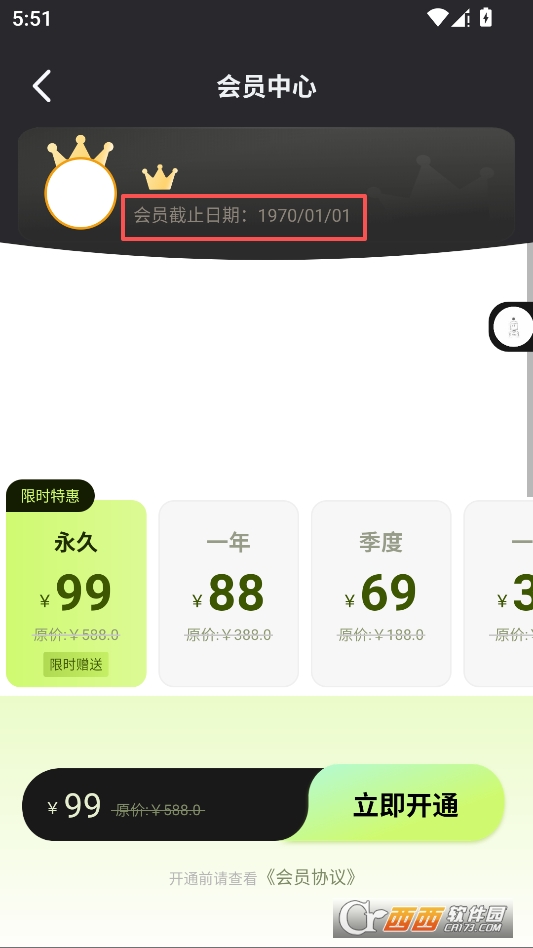 进入软件后点击上方的会员按钮