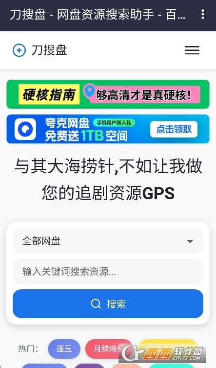 刀搜盘app官方最新版是一款实用的网盘资源搜索助手软件,提供专业的网盘资源搜索功能,覆盖了夸克、百度、迅雷等多种网盘资源,支持一键搜索资源,多种渠道下载,任意选择,非常简单,提供专业的工具使用,有需要的小伙伴们欢迎来下载试试吧。
