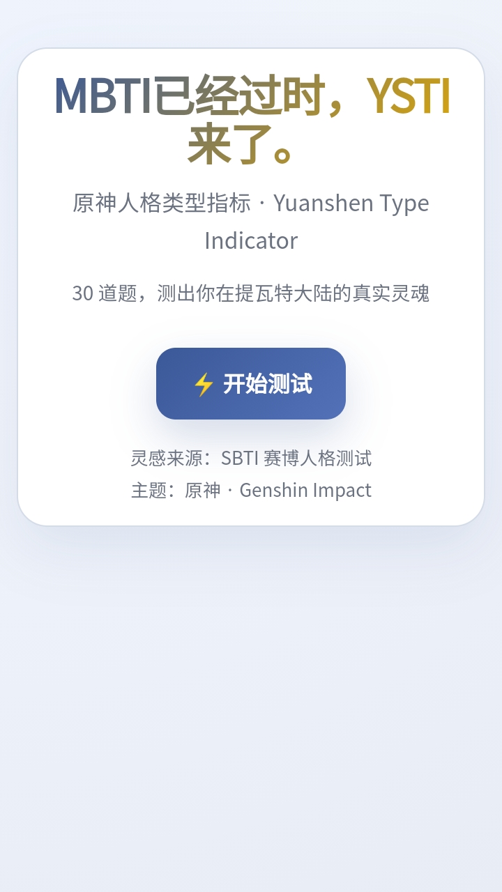 4.测试基于原神游戏世界观与角色设定,结合SBTI框架,用提瓦特角色与剧情增强代入感,让玩家在熟悉的环境中完成测试。