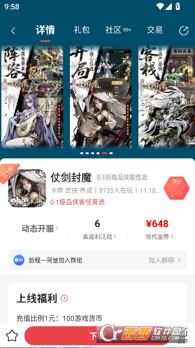 惠爪游戏app折扣福利版是一款专为安卓游戏玩家用户打造的手机游戏资源平台,平台每日更新热门开服游戏推荐,实时热度榜单参考推荐,涵盖卡牌仙侠,三国传奇,模拟经营,放置网游等多种类型,点击感兴趣的游戏就能一键下载游玩,还能领取平台专属的648充值抵扣券和各种福利礼包,支持闲置账号回收交易,满足不同游戏玩家的使用需求 。