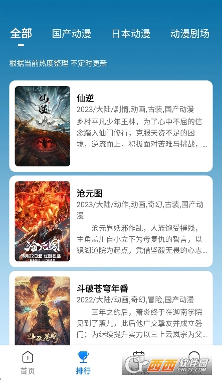 2、通过分类栏,按题材、热度筛选心仪的动漫,快速找到目标内容;