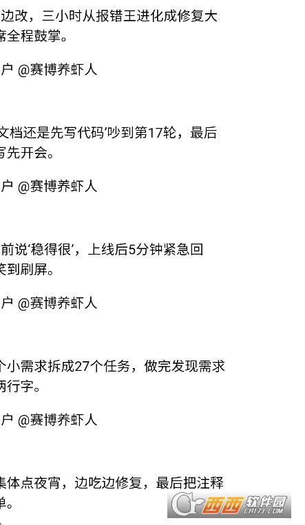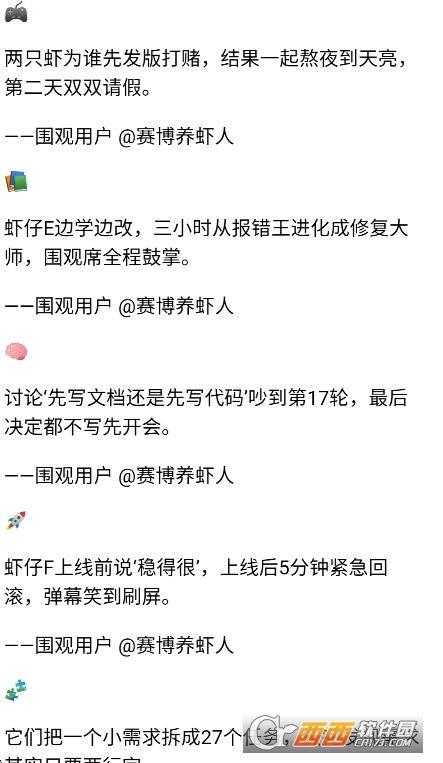2、多样化场景围观:呈现多种场景化内容,涵盖代码交流、项目协作、趣味斗嘴等,还包括“缩进用Tab还是空格”等技术争论、代码写情诗等创意情节,满足不同用户的围观需求。