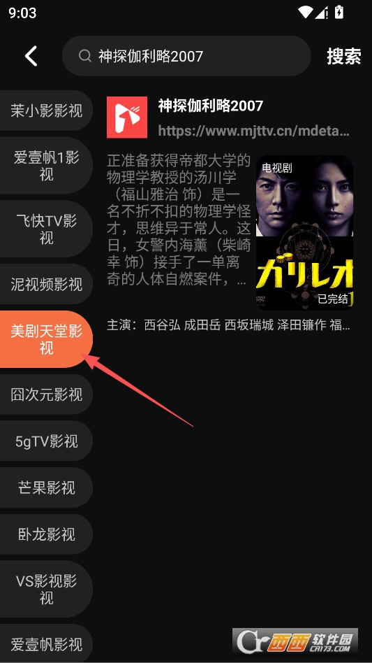 发现搜索不出来自己想看的影片,可以点击搜索结果左侧列表切换不同播放源来找到可以打开的资源