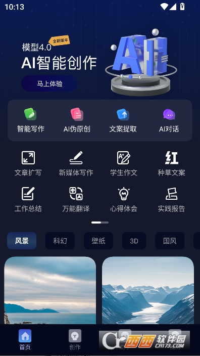 AI.写作岛app官方正版是一款便捷实用的AI创作助手,能够帮助用户快速实现内容创作,支持主题写作,文案提取,扩写润色,工作总结,文案翻译等功能,涵盖多个领域,为不同用户提供快捷高效的内容创作服务。软件还内置了多样化的AI智能助手,能够提供实时互动问答,打造沉浸式情感互动,有需要的快来下载体验。