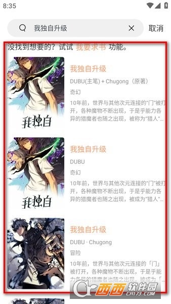 3、然后软件就会展示多个搜索结果,因为内置好几个漫画源,所以结果不止一个;
