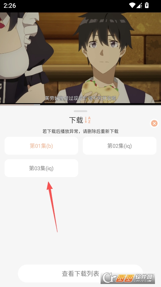 在播放界面点击下载选项