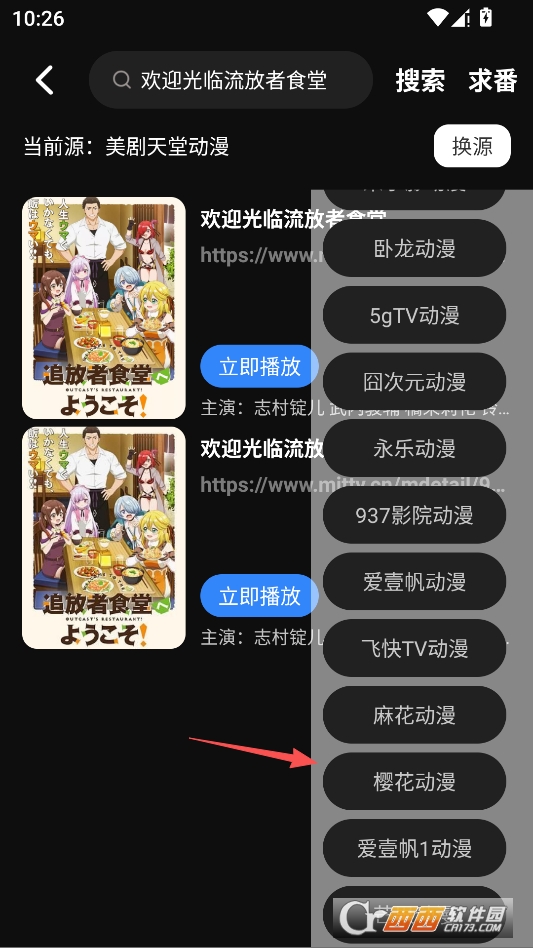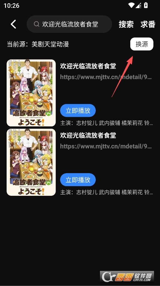 在搜索结果页面,点击右上角的换源按钮