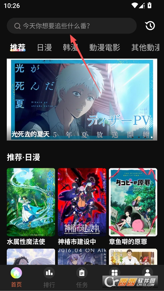 进入软件后先去搜索找到你想看的动漫