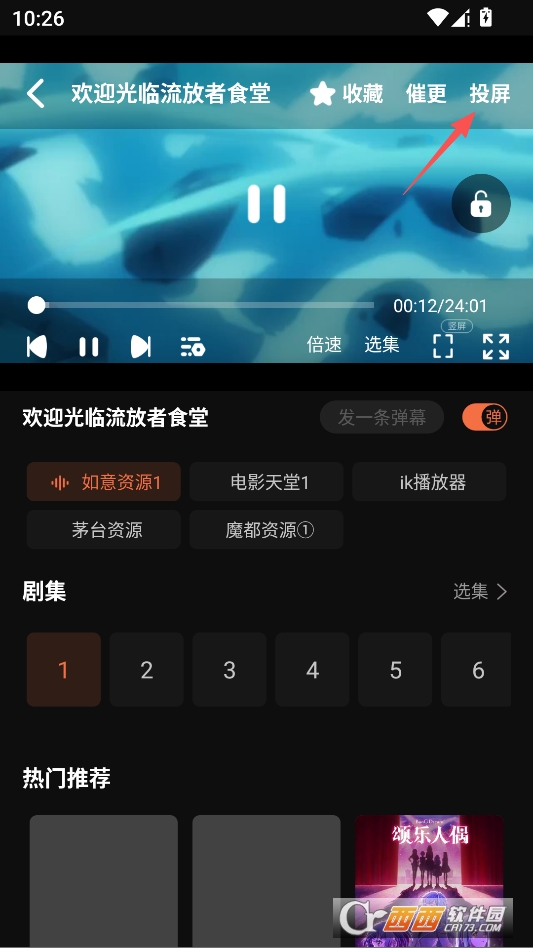 然后在播放界面点击右上角投屏按钮