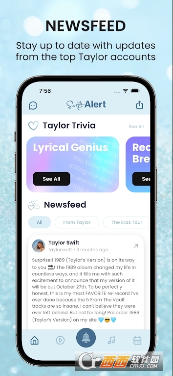 Swift Alert泰勒粉丝社区app官方版是一款针对泰勒斯威夫特打造的粉丝向社区软件,提供粉丝专属交友平台,打造优质的粉丝社区平台,非常精彩,提供更多追星动态,还有粉丝社区模式,各种惊喜应有尽有,点击即可下载,非常好用,有需要的欢迎来下载试试吧。