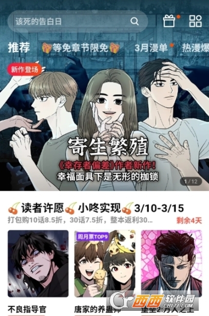 找漫画:首页浏览“为你推荐”“热门榜”“新作榜”“完结榜”等板块,或使用分类/搜索功能。