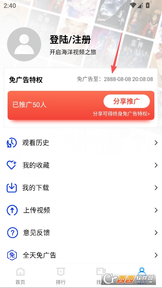 来到个人中心即可看到已经为你解锁了永久去广告权限