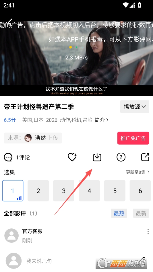 在资源播放页点击下载按钮