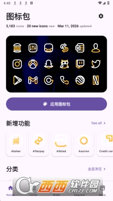 1.海量图标覆盖:内置超过3100枚精心设计的线性图标,涵盖日常社交、办公、娱乐、工具等各类应用,同时为多款热门应用提供备选图标,确保桌面视觉风格统一,避免出现未适配图标的突兀感,且支持每周更新,持续补充新应用图标,满足用户长期使用需求。