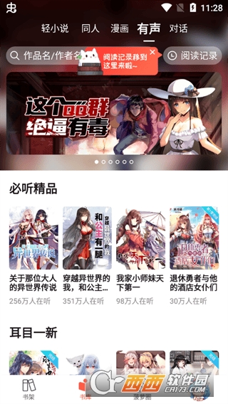 3、不想看小说翻页,那么就听小说吧,各种精品小说等你来听;