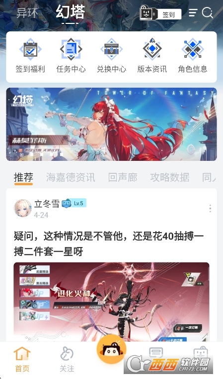 1、进入软件首页,查看幻塔与异环游戏社区