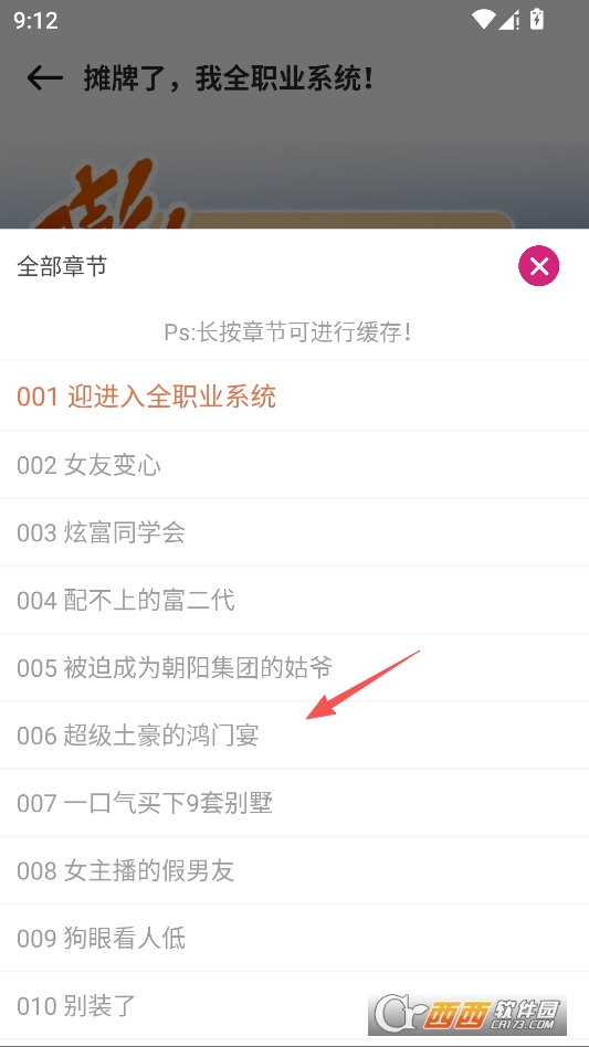 长按任意章节即可开始缓存对应章节
