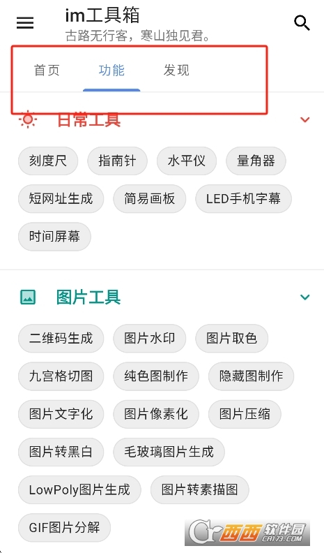 im工具箱2026最新版是一款免费的工具箱软件,提供专业的工具箱合集,打造优质且免费的图像工具、日常工具、查询工具以及计算工具等等,非常实用,提供专业且便利的精彩工具箱资源,非常受欢迎,感兴趣的小伙伴们欢迎来下载试试吧。