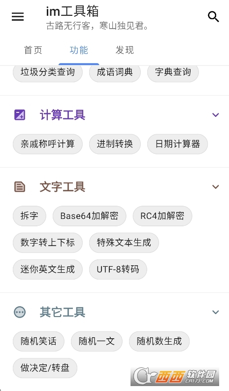 集成图像处理、日常辅助、信息查询、计算转换等四大类工具,覆盖数十个实用功能,满足日常使用中的绝大多数需求。